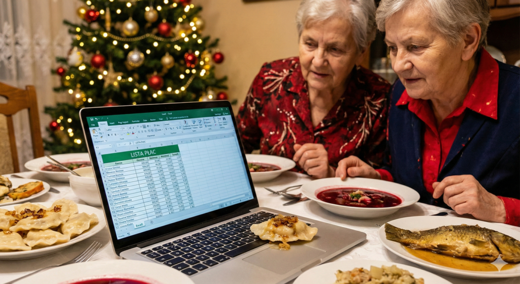 Stawiasz laptop na rogu stołu, tuż obok wazy z zupą, sosjerki i szklanek z kompotem. Zasada: Elektronika i świąteczne potrawy to śmiertelni wrogowie. Wystarczy chwila nieuwagi czy jeden gwałtowny gest przy stole, by zalana klawiatura kosztowała firmę kilka tysięcy złotych (i utratę danych na dysku). Komputer trzymamy z dala od obrusu!